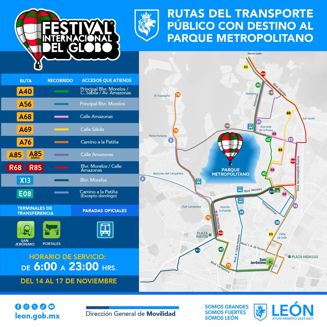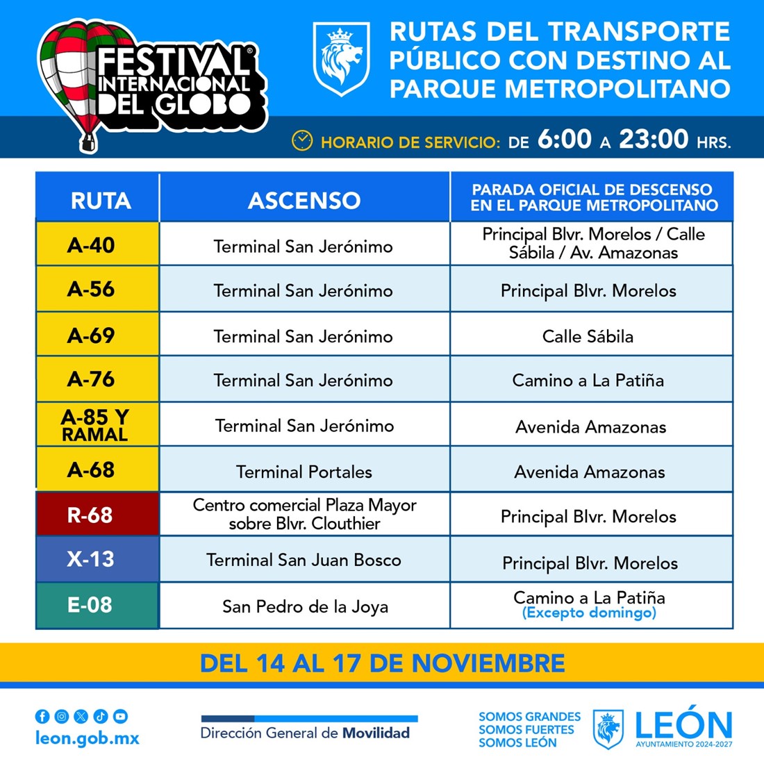 Si estás pensando en asistir al Festival Internacional del Globo (FIG), el Gobierno municipal de León dio a conocer las rutas, horarios y alternativas del Sistema Integrado de Transporte (SIT) que operarán durante los días del evento. ¡Toma nota!
