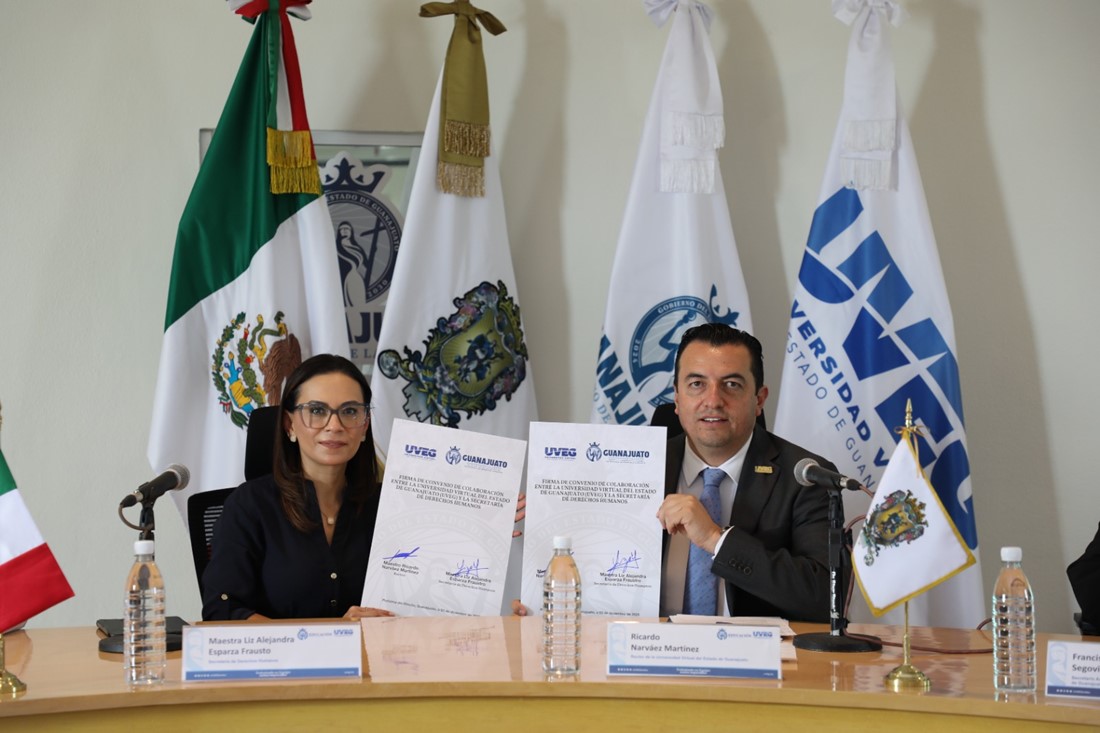 La Universidad Virtual del Estado de Guanajuato (UVEG) y la Secretaría de Derechos Humanos del estado, firmaron un convenio de colaboración con el propósito de fortalecer acciones de capacitación, inclusión y desarrollo. ¡Te damos los detalles!