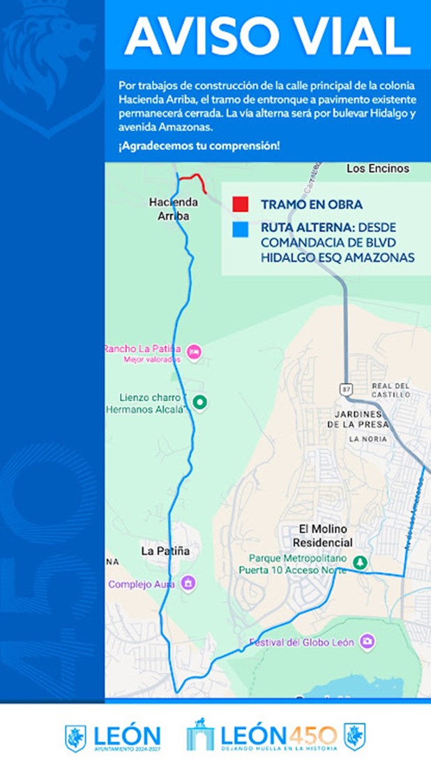 El Gobierno municipal de León informó que inició la pavimentación del acceso principal de la colonia Hacienda Arriba, por lo que aquí te compartimos las vías alternas que deberás tomar si transitas por esa zona. ¡Toma nota!