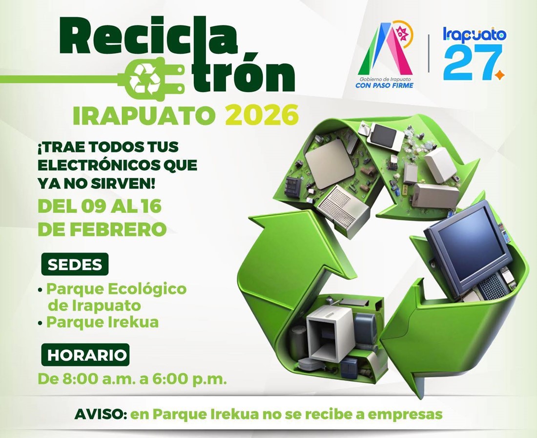 Si tienes aparatos o piezas electrónicas que ya no uses, te contamos que en Irapuato ya inició el Reciclatrón 2026. ¡Aquí te decimos qué artículos puedes llevar y dónde están los centros de acopio!